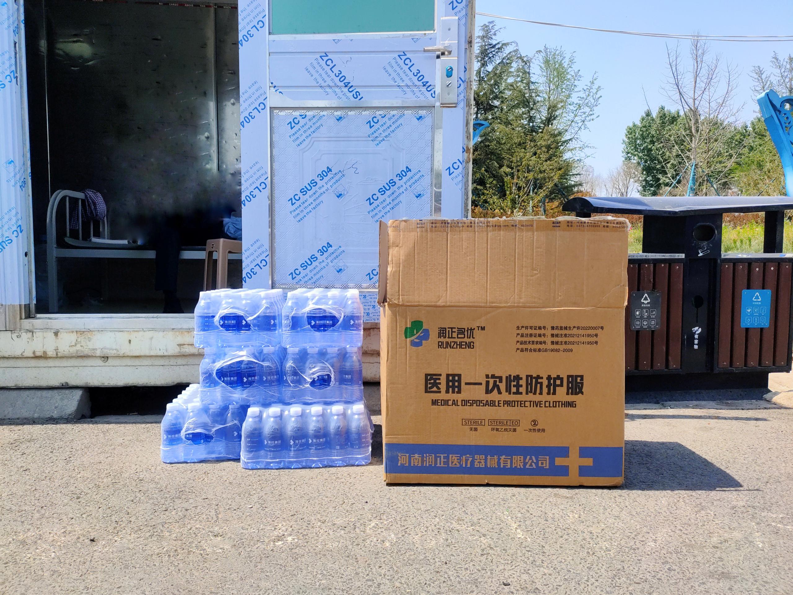 ??丶瘓F為在收費站一線工作的防疫志愿者送上瓶裝飲用水和防護服,同時對防疫志愿者的辛勤付出表示感謝,對防疫志愿者不畏疫情和炎熱、守崗敬業(yè)的精神表達了敬佩。