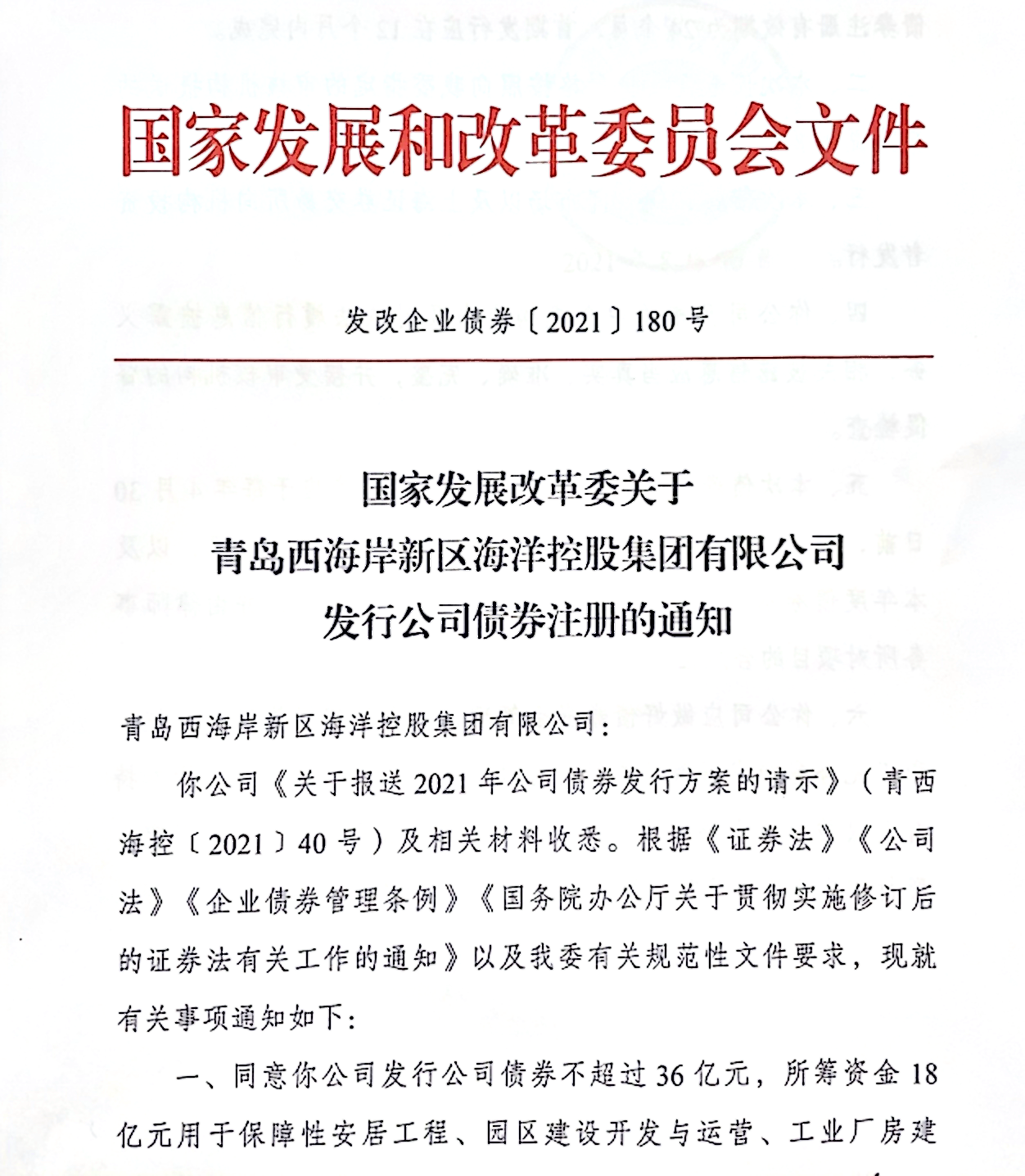 8月30日,??丶瘓F成功獲得國家發(fā)展和改革委員會優(yōu)質(zhì)企業(yè)債批復(fù),額度36億元,標志著青島市第一支優(yōu)質(zhì)企業(yè)債券成功獲批。
