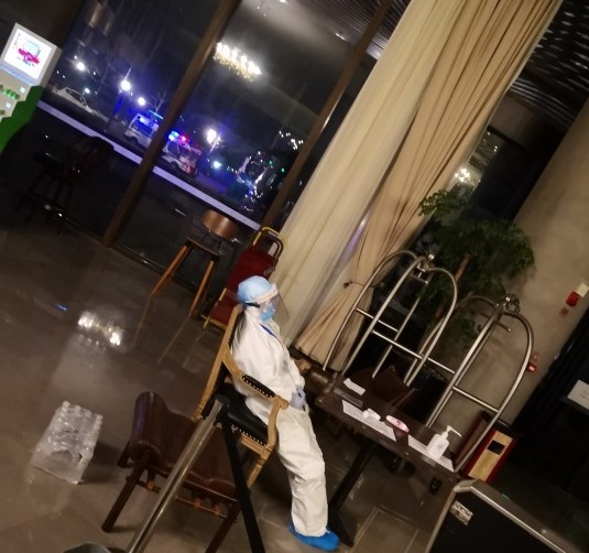 酒店內(nèi),客人對工作人員有一個(gè)親切的稱呼——“大白”,套上密不透氣的隔離防護(hù)服,從頭到腳“全副武裝”,從開始花費(fèi)20分鐘,到現(xiàn)在熟能生巧5分鐘完成,脫防護(hù)服更是要細(xì)致認(rèn)真,每脫一件都需要洗一次手,脫一趟下來,起碼要洗6、7次手。